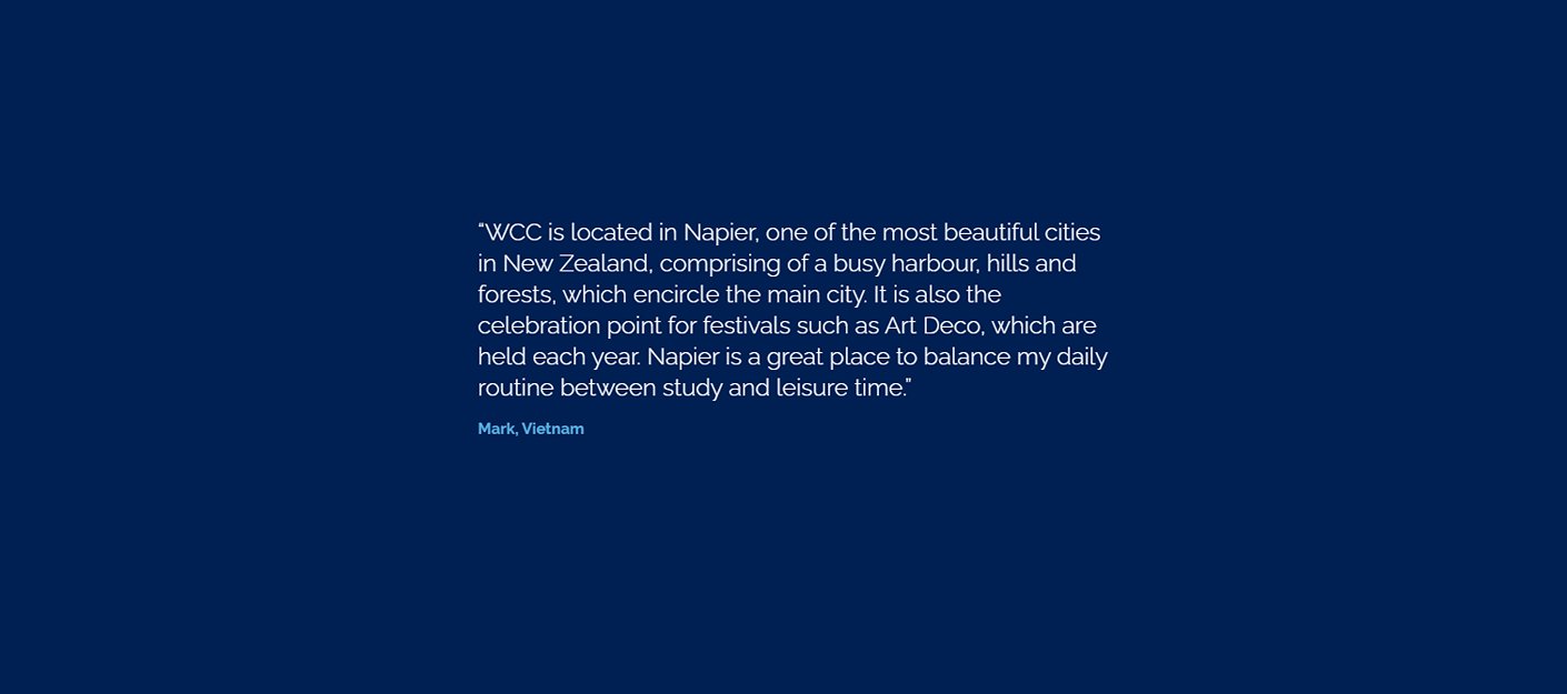 William Colenso College has a strong tradition of academic achievement and we are a signatory to ‘The Code of Practice for the Care of International Students’.